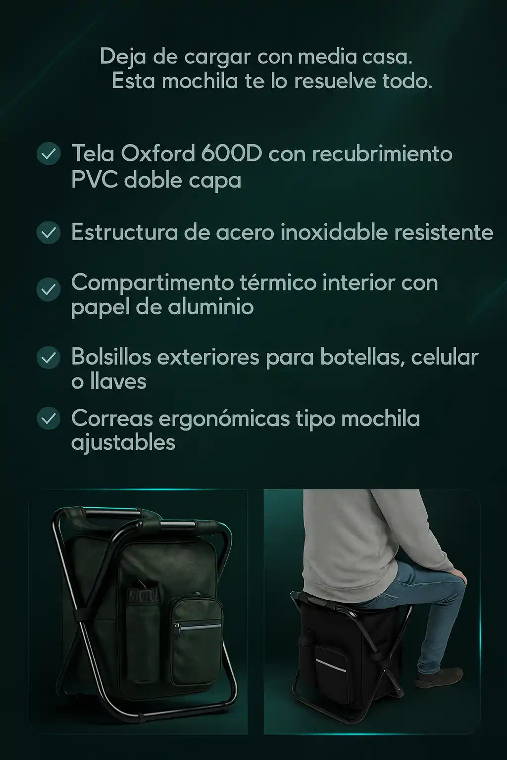 Aprox. 15-20 litros en el compartimento térmico, suficiente para botellas, snacks y comida.