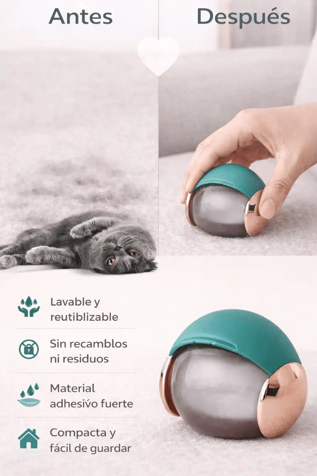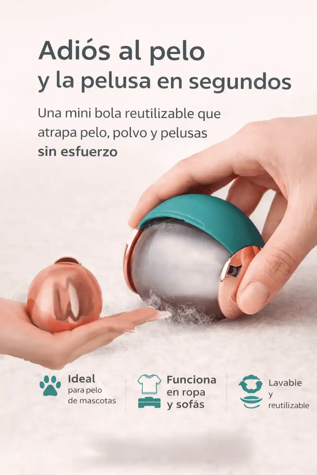 Sí. La bola TPE tiene alta adherencia y atrapa pelos y pelusas al contacto.