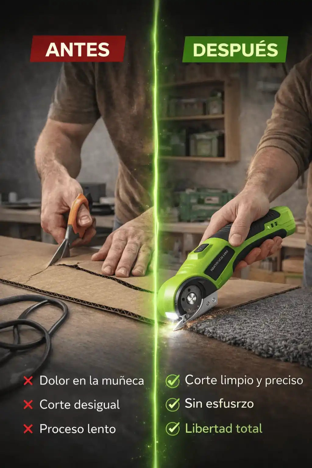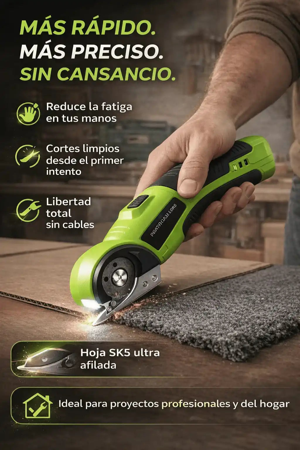 No. Solo presionas el botón y guías el corte. No requiere fuerza.