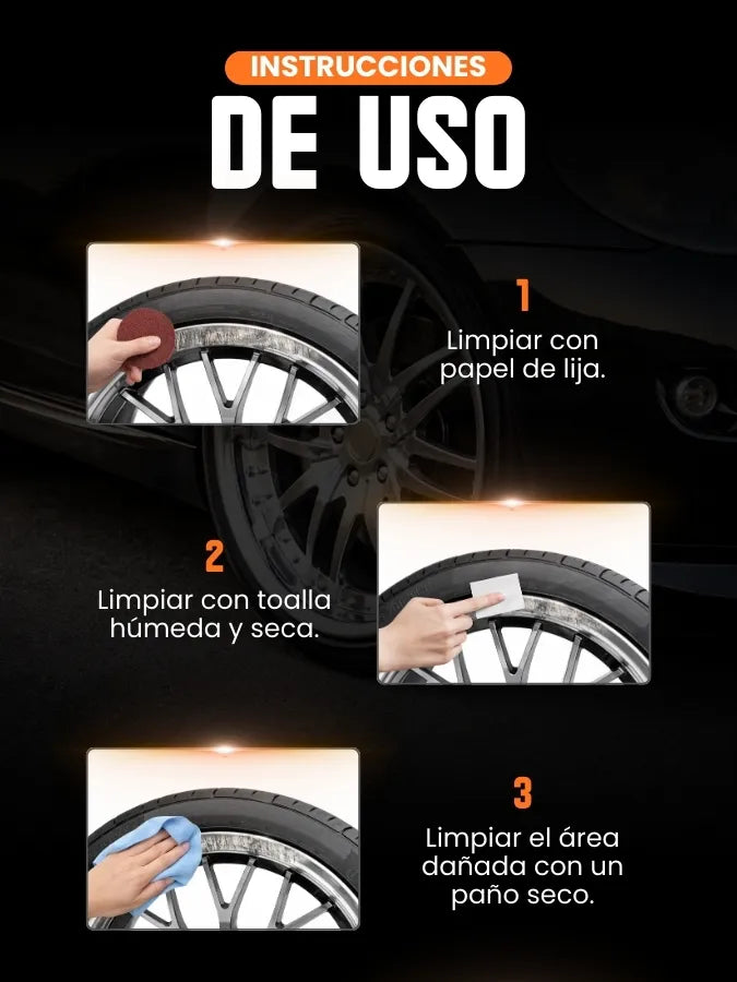 El proceso completo toma aproximadamente 30 minutos, incluyendo aplicación y secado inicial. Para un resultado óptimo, se recomienda no exponer el área reparada a agua o fricción fuerte durante las siguientes horas.
