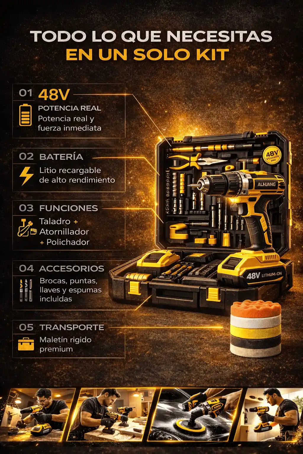 Funciona perfectamente en madera, metal y superficies domésticas comunes.