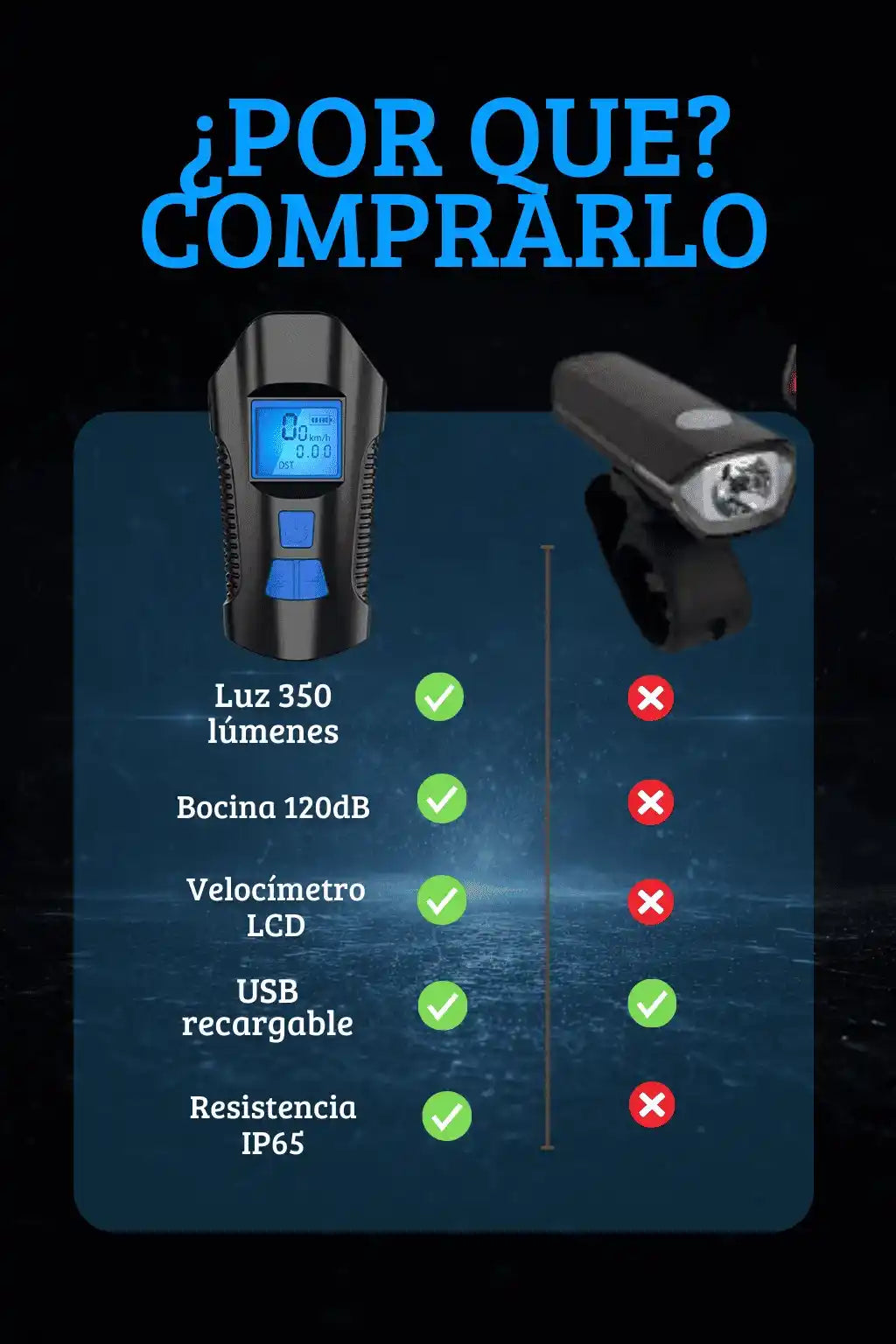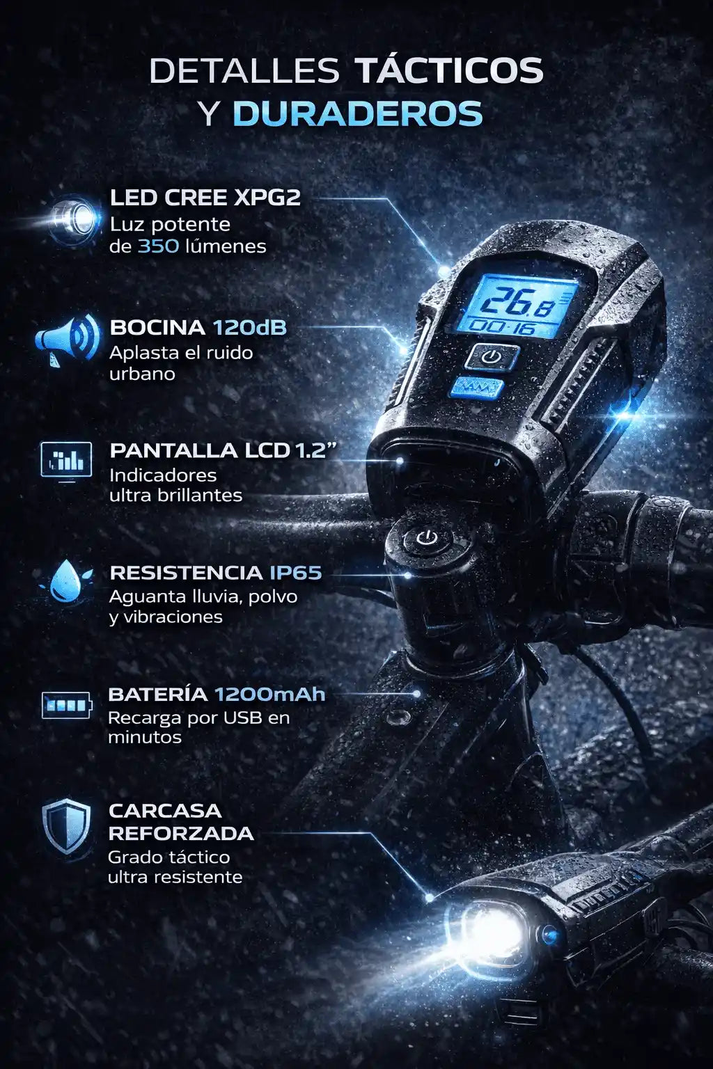 Sí. 350 lúmenes reales LED T6, diseñada para rutas nocturnas y urbanas.
