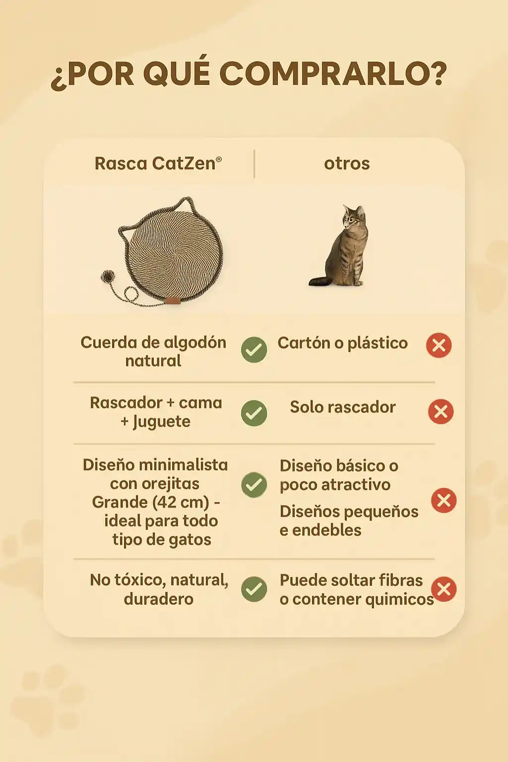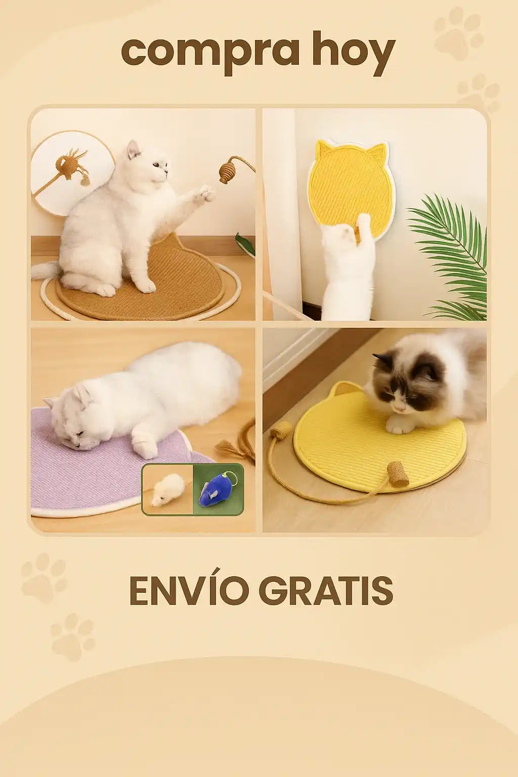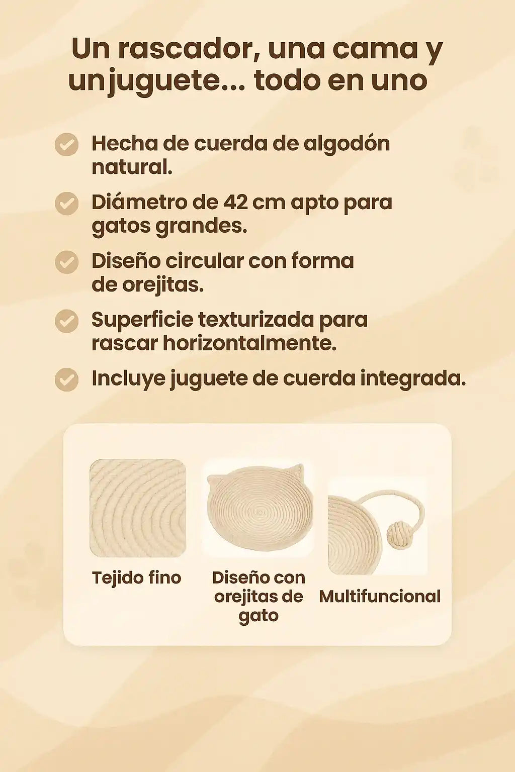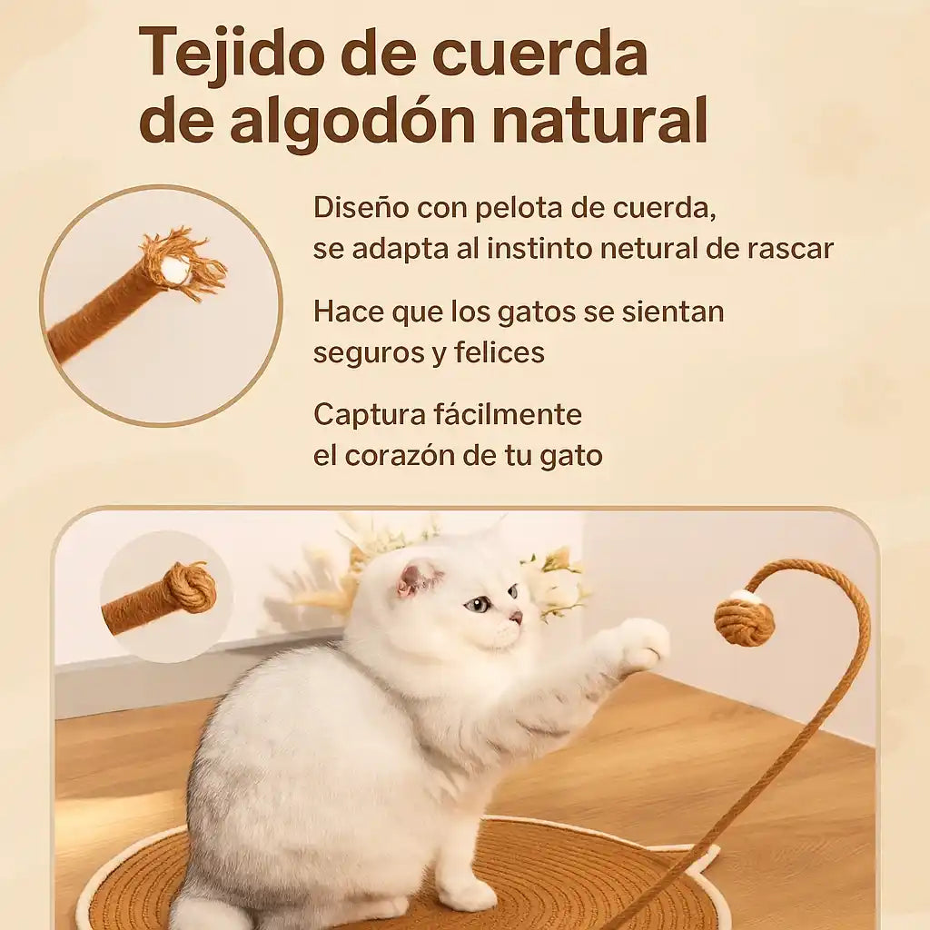 La textura circular lo hace muy atractivo para rascar y jugar.